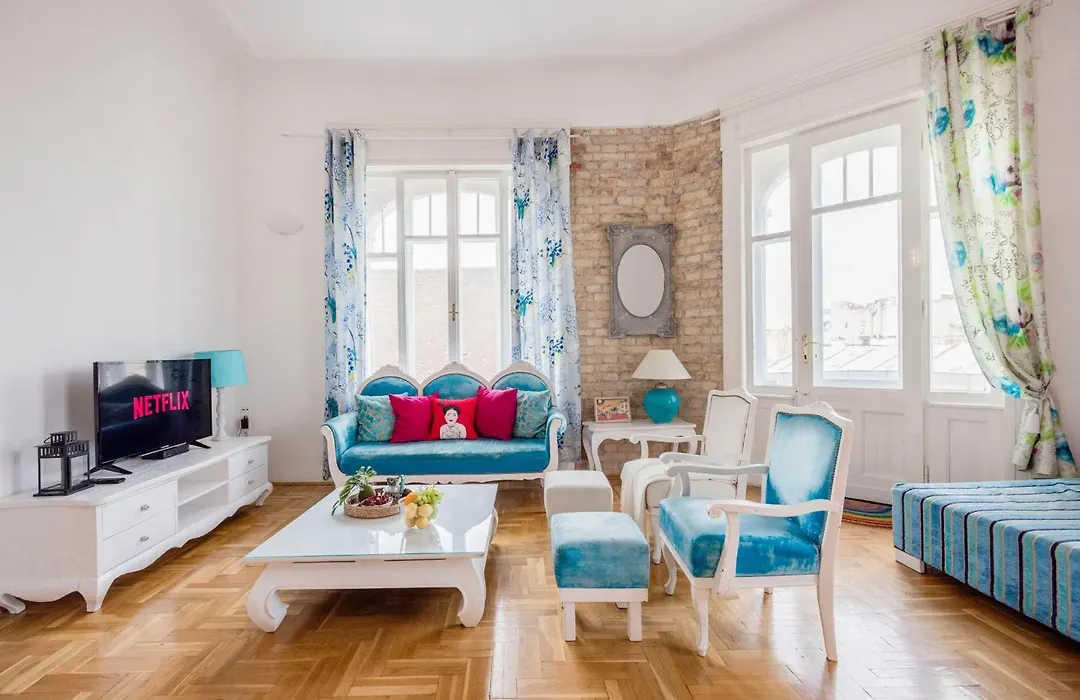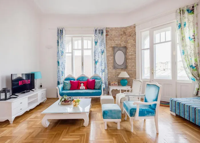 The 120 m² Amazing View Designer Home With Sauna And Jacuzzi 3 Min To Opera House Budapest is situated right in the centre of Budapest, around a 25-minute walk from the Margaret Bridge. Featuring a hot tub and a sauna, this 2-bedroom apartment is located within easy reach of the Gozsdu Courtyard.
